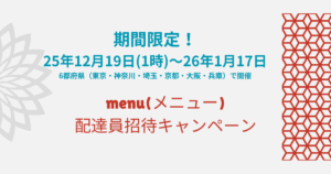 関東・関西の6都府県でmenu(メニュー)で配達員紹介キャンペーンを開催中!
