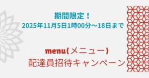 menuでの招待キャンペーンはたまにしか開催されません(更に前回より条件大幅UP)