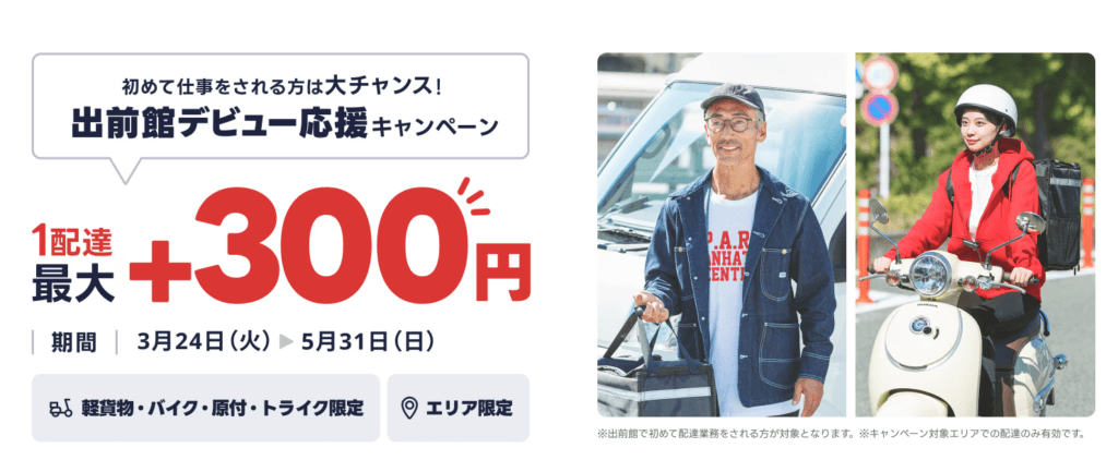 出前館では2026年5月31日までエリア&車両限定でデビュー応援キャンペーンを開催