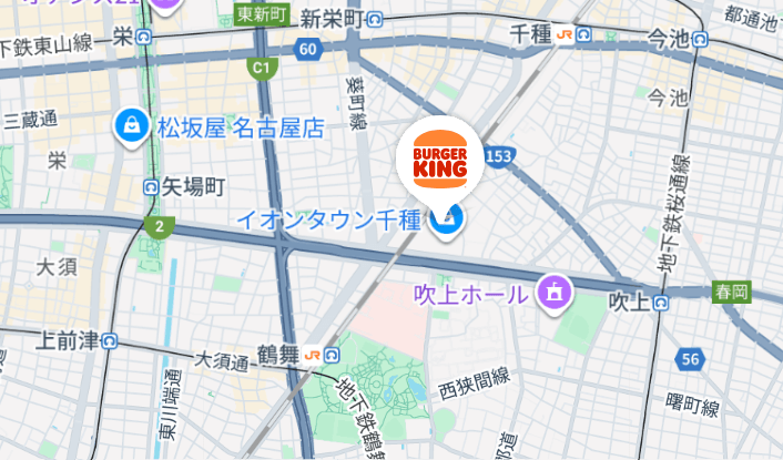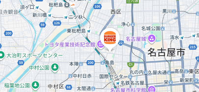 名古屋市では以下のバーガーキングが加盟している為、店舗場所を把握しておくと鳴らないときの立ち回りに役立ちます。